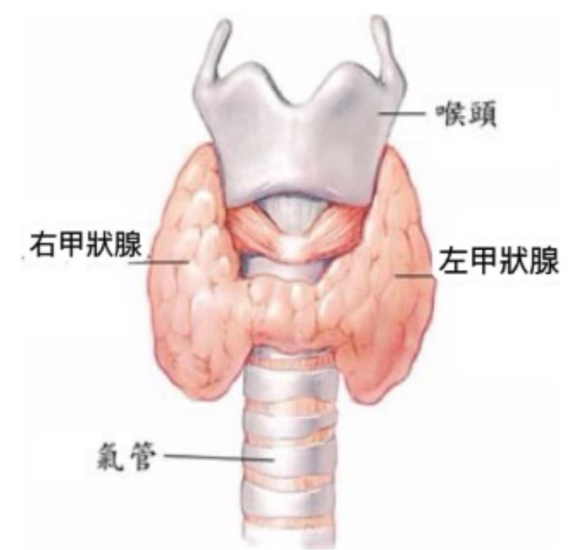 - 結節經穿刺檢查為惡性或無法確診者部分切除,會切除頸部蝴蝶狀的甲狀腺組織